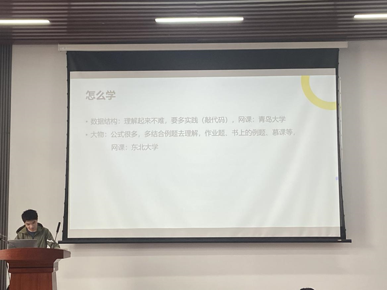 互助营导师张午潇就如何度过一个充实的大一生活进行了分享,通过结合自己亲身学习经历,总结方法,调整心态,为“怎么学好”这个问题作出解答。他指出,针对不同课程要有所侧重,一方面是学习方法要与课程内容相匹配,另一方面要注重基础课程的实践,做好实验。同时针对普遍性课程问题,张午潇列举出部分方法与解决示例,令大家受益匪浅。