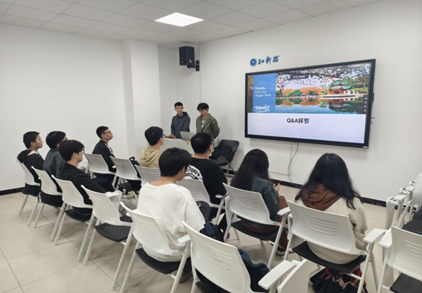随后,张雄凡同学以竞赛、保研和科研为主题分享了个人经验。张雄凡向同学们解读了保研政策,并向同学们推荐了一些重要竞赛赛事。此外,他还介绍了本科生进入实验室参与科研的途径和工作内容,他激励有深造意愿的同学们在课堂学习之余投入到学术研究中去,为自己未来的学术生涯奠定良好基础。