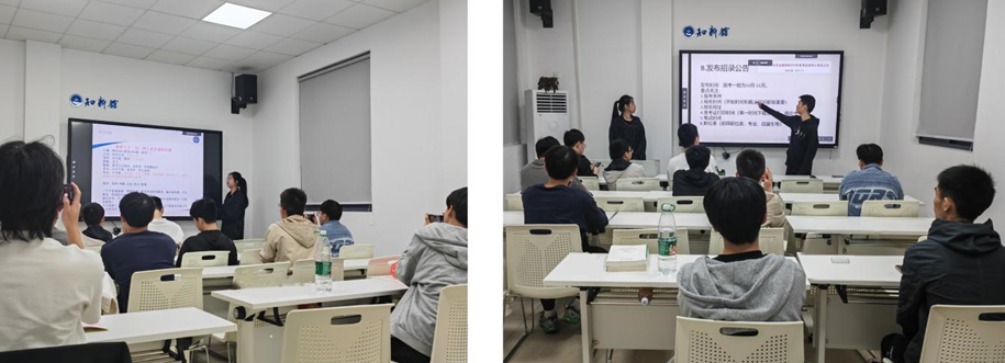 与此同时,软工2006班周希、软工2006班伍静苇在铁道校区知新馆103开展了考公经验分享,讲述了国家公务员考试、选调生考试和面试的备考技巧。
