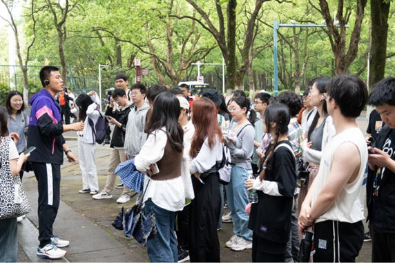 的老师参与互动。师生们从湖南大学南大门出发,途经爱晚亭,古麓山寺,云麓宫,最终抵达中南大学云麓山庄。