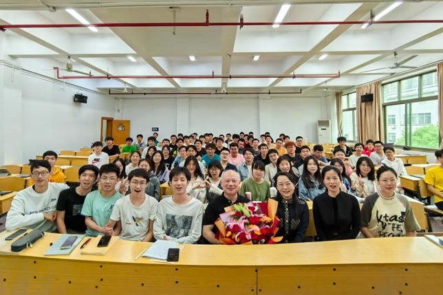 党委书记赵晓霞一行来到铁道校区世纪楼,为当天过生日的陈志刚教授送上鲜花、贺卡和温馨的祝福。教室里,为表达对陈教授悉心教导的感激之情,在场师生齐唱生日歌,为陈教授送上暖心祝福!