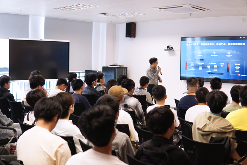 师生的到来表示欢迎,他指出华为有着高层次人才的需求,从华为的领先理念和多元视角给同学们分享了更多人才发展和技术实践方面的内容,为学生们提供了更多启发和指导,也欢迎同学们多多交流。