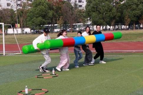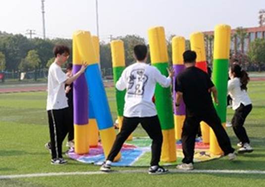 本次趣味运动会设置了“携手并进”“趣味飞盘”“同心协力”“俄罗斯方块”“围圈立柱”和“闪电纵队”六个比赛项目。每个项目按照成绩高低,累积计分,最终参赛团队成绩为六个项目累积积分从高到低的顺序排名。