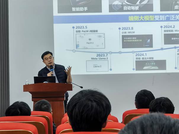 计算机科学与技术系副主任张永敏教授的邀请,清华大学任炬教授在信息楼535智慧学术教室为计算机科学与技术专业和计算机拔尖基地班(图灵班)的本科生同学们做了题为《端侧大模型:趋势与挑战》的专题报告。任教授的报告深入浅出,从大模型时代的国家战略介绍开始,讲解了当前端侧大模型技术的局限性,提出了一种创新的大模型协同计算体系,以应对端侧大模型面临的三个根本性挑战。报告里,任教授从大模型的端侧部署与微调机制、端边协同推理性能优化、以及异构多智能体协同决策方法三个方面,深入分析了端侧大模型在当前研究中的最新进展与面临的挑战。他指出,尽管大模型技术得到了快速发展,但从大型语言模型(LLM)到实际智能体的过渡仍然存在不小的技术差距。报告中,任教授还探讨了未来大模型在端侧个性化部署、推理加速及协同决策等领域的技术趋势,并分享了可能的解决方案。