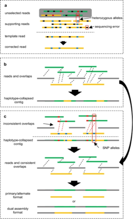 第三代测序技术(牛津纳米孔测序和PacBio单分子实时测序)的迅速发展产生了更长和更准确的读数,给基因组组装研究带来了新的机遇和挑战。对于二倍体组装来说,第三代读数依然含有较高的测序错误,组装算法很难将测序错误与单倍型差异信息区分,从而生成单倍型混合的组装结果,其含有大量的单倍型切换错误, 并且丢失了很大一部分遗传信息。