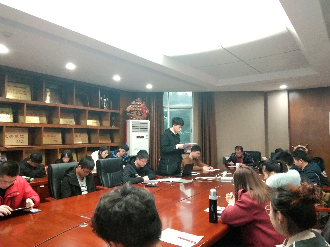 支部书记王睿卿同志向支部党员重点阐述了十九届中央纪委五次全会以及中共中央政治局1月28日会议的相关内容,带领党员学习贯彻相关精神。强调要坚持学懂弄通做实党的创新理论,以庆祝建党100周年为契机,“不忘初心,牢记使命”,加强党性锻炼、党性修养,坚定理想信念,百折不挠把自己的事办好;筑牢思想防线,时刻自重自省自警自励,做政治信念坚定、遵规守纪的明白人。在此次会议上,师雷宏同志也向全体党员强调了学习党史等党的理论知识的重要性,身为一名党员,一定要严格要求自己,在学习过程中学会思考,并且要能够将学习到的知识运用到生活中,为身边的同学、老师服务。