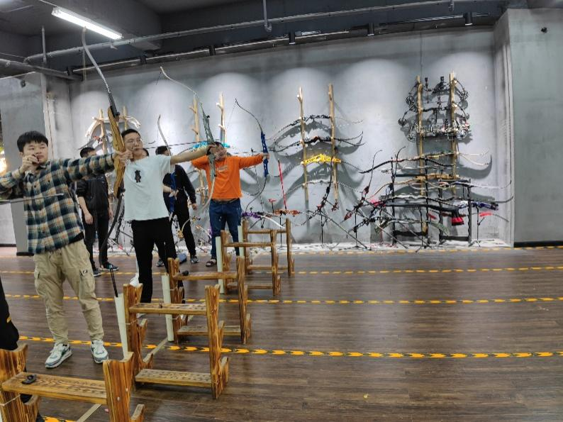 活动定于下午四点开始,统一安排大家到达射箭馆集合。活动正式开始前,两位班长带领班级同学通过团建游戏的方式快速认识并互相熟悉。活动正式开始后,首先由游戏小组组长分别带领队友集合,由射箭馆教练统一教授射箭的方法和技巧以及安全注意事项。