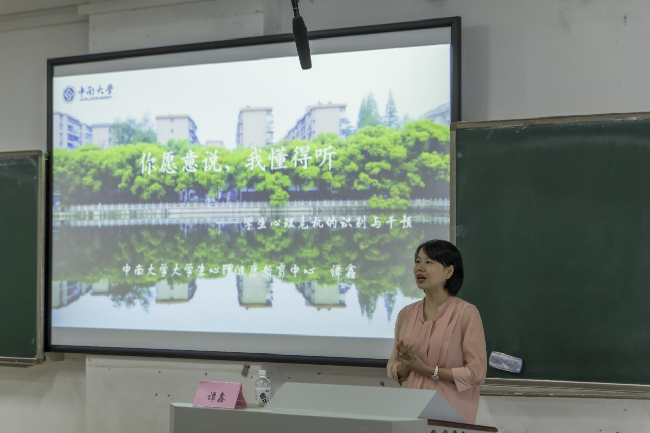 研究生导师、班导师的学生心理危机干预主题培训讲座。本次讲座由廖璠艺辅导员主持,邀请了来自中南大学大学生心理健康教育中心的心理辅导老师——谭鑫老师进行培训。