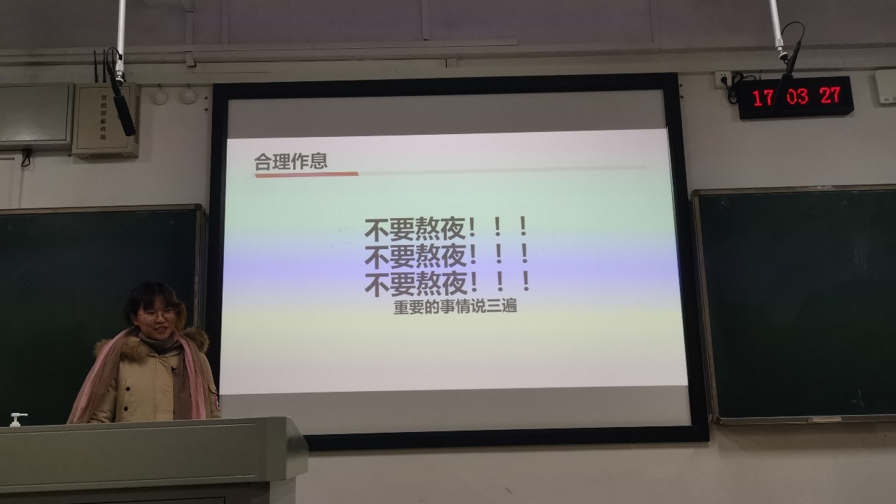 讲座结束后,同学们就学习上的困惑向导师提问。关于学习效率,刘梓康学长说道:“我八点起床,但我不觉得自己比七点起床的同学少学习了一小时。”可见通过合理的作息,提高自己的学习效率,比早早地坐在书桌前更有效果哦。除了学习,赵语林学姐鼓励我们适量运动,并指出身体健康始终要放到第一位。