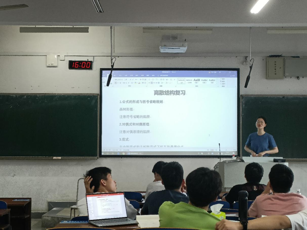 7月1日下午4点,离散结构考前辅导在A119开始,由来自软件工程1804班辅学义工葛雨晴主讲。学姐将离散结构知识点做了详细的整理,并针对老师特点对考题进行分析预测。学姐指出了复习重点,也指导了学弟、学妹们关于考前A4纸的写法。