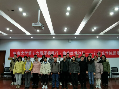 12月16日下午,第十六届厚德践行·梅岭经世论坛在中南大学校本部计算机楼313室如期举行,本部关工委副主任叶夏生、新濠娱乐城 党委副书记史建权、团委书记许宁以及辅导员老师李梦、哈纳提、廖璠艺、王睿卿出席活动。