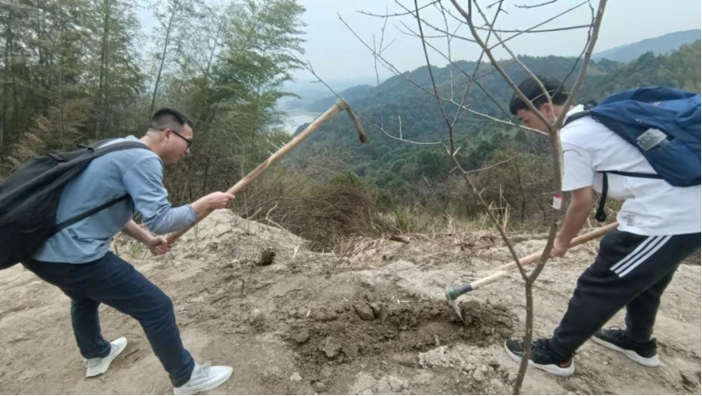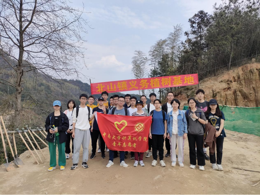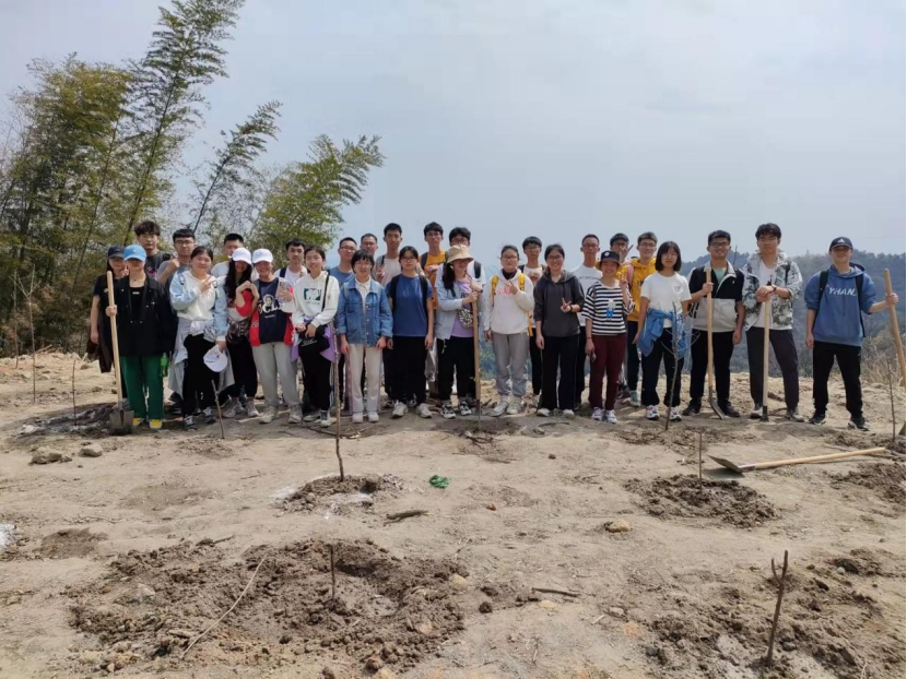 团学会青志协进行义务植树活动,30名青年志愿者共赴长沙县北山镇义务植树基地,栽下树苗,种下希望。