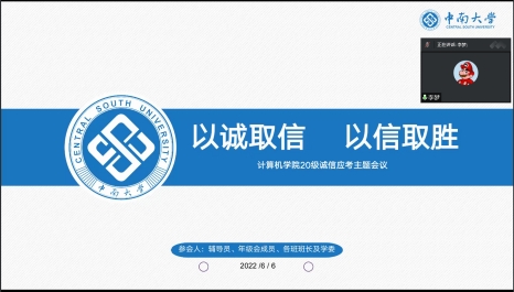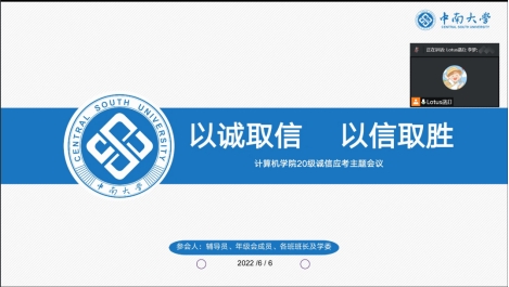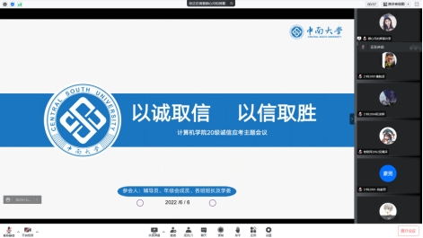 20级本部于6月6日晚开展“诚信应考”线上主题会议,全体班长、学习委员及辅导员李梦老师、周清菡老师参加了此次会议。