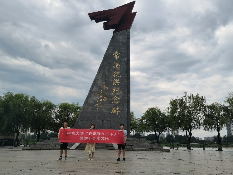 7月28日,实践团前往社会实践第三站——常德诗墙公园。滔滔沅江河畔,风雅无俦的常德诗墙公园内,一座承载着记忆的“常德抗洪纪念碑”高高耸立。常德是座水灾频发的城市,历史上水患频繁,这一座耸立于常德诗墙公园的抗洪纪念碑,象征着在中国共产党人的带领下,常德人民抗击水灾的坚强不屈的斗志与抗击阻碍的决心。在98年洪患爆发之时,活跃在一线的中国共产党员是抗洪的中流砥柱,经过8个昼夜的齐心协力地奋战,常德人民用生命写下了誓言,用血汗铸造了防汛“长城”,终于战胜了这次洪患,保卫了整个常德城。在讲解员的带领下,实践团成员深入学习98年常德抗洪的红色文化底蕴,决心将坚持不懈的品质与共产党员舍己为人的精神内化于心,外化于行。