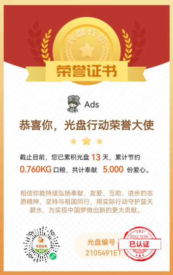 活动预热阶段,10月4日-10月9日,各团支部书记同组宣委员带领团员们开展了为期5天的线上光盘打卡活动,同学们积极晒出自己的“光盘”照片,累计节约30KG口粮,同时多人获得了荣誉证书。与此同时,团支部以“社会粮食节约意识及现状”为主题进行了问卷调查,问卷涉及饭菜选择、剩余饭菜的处理、对于浪费粮食的主观感受、对光盘行动的认识与建议以及从个人和社会层面可采取的措施等,问卷收到反馈众多,充分显示了同学们对粮食安全问题的重视,也反映了社会对粮食安全的关注度有待提高。除此之外,团支书还组织团员对专门的农技人员进行了采访,主要对现在的农业技术及产量变化进行提问,并得到了较为详细的解答,使同学们对农业生产有了更深刻的认识。
