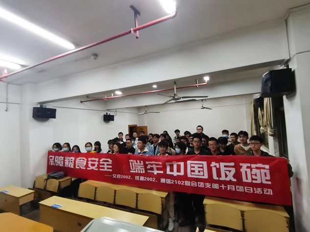 仓廪实,天下安,粮食安全是国家安全的重要基石。为引导团支部成员积极响应“喜迎党的二十大,永远跟党走”号召,深刻领悟“两个确立”的决定性意义,以实际行动迎接党的二十大胜利召开,10月9号,通信2102团支部,铁道2002团支部,交控2002团支部联合举行了以“保障粮食安全,端牢中国饭碗”为主题的团日活动。此次活动以线上、线下相结合的方式开展。各支部团员踊跃参加,气氛热烈。