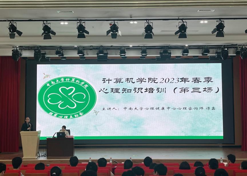 在新校区信息楼108开展2023年春季第三场心理知识培训。此次培训会由中南大学心理健康教育中心谭鑫老师主讲,面向19级、22级各班心理委员、寝室长以及研学会全体干部。新濠娱乐城