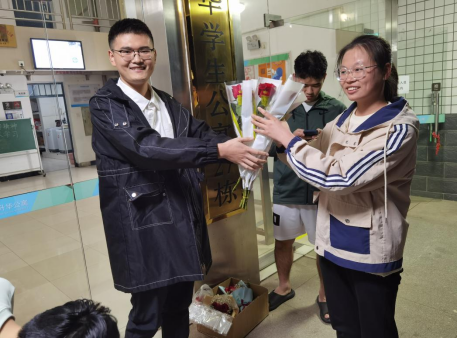 一朵朵鲜红明艳的玫瑰被分发到女生们的手中。当女生们接过花束时,脸上总会洋溢着欢喜与感动。这是专属于她们的特别的礼物。