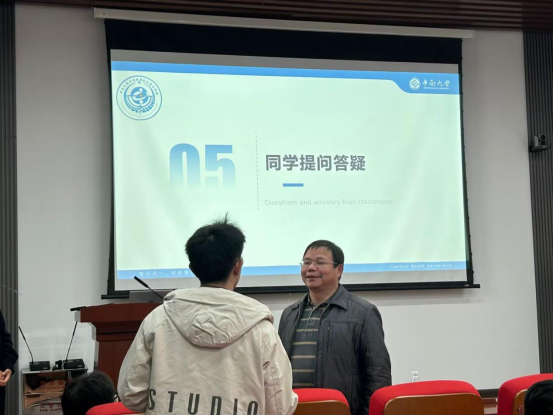 最后,费洪晓老师就大家对软件创新比赛提出的问题进行了全面又细致的回答。费老师寄语同学们,作为中南大学计算机院学子,应当将自己的青春梦与伟大的中国梦结合起来,将软件设计与实际应用相结合,服务于社会发展。