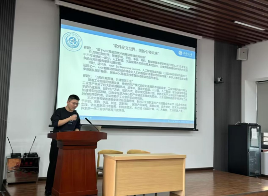 随后,王为真同学分别从大赛信息、组队情况、关键技术和难点、参赛项目四个方面为同学们做软创比赛经验分享,并强调了创新性和团队配合的重要性。