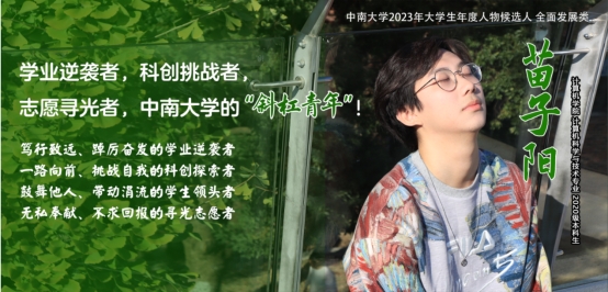 12月17日下午,中南大学2023年大学生年度人物答辩现场在毓秀楼进行,我院20级本科生苗子阳同学斩获“中南大学2023年大学生年度人物”。