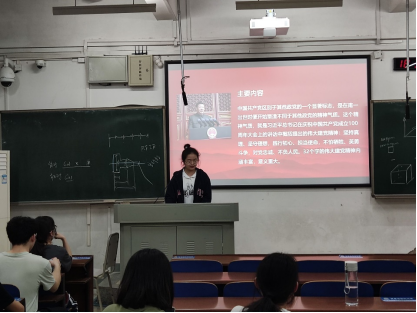 研讨会的第一部分,宋佳雯对习总书记在建党一百周年大会的讲话进行了重点解读,帮助同志们更加深刻地理解伟大建党精神,提升自己的党性,端正自己的入党动机,并让同学们对于“不怕牺牲,英勇斗争”“对党忠诚,不负人民”等伟大建党精神有了更清晰的认知。