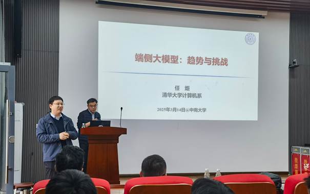 此次报告不仅加深了同学们对端边云智能大模型的理解,还激发了他们对这一前沿学科领域的浓厚兴趣。在报告的最后,任教授向与会人员介绍了清华大学计算机系的直博生招生政策,吸引了在场不少同学对未来学术发展的关注。随后的互动环节中,师生们就端侧大模型技术的应用与发展展开了讨论,任教授耐心回答了大家提出的问题,并分享了自己对当前技术瓶颈及招生政策的相关见解。